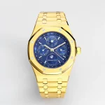 – **Elegant Design**: The Audemars Piguet Royal Oak Perpetual Calendar Watch features a sophisticated blue dial with a gold case and bracelet, embodying the pinnacle of luxury watch design.