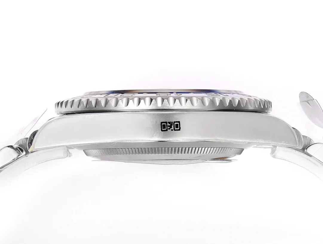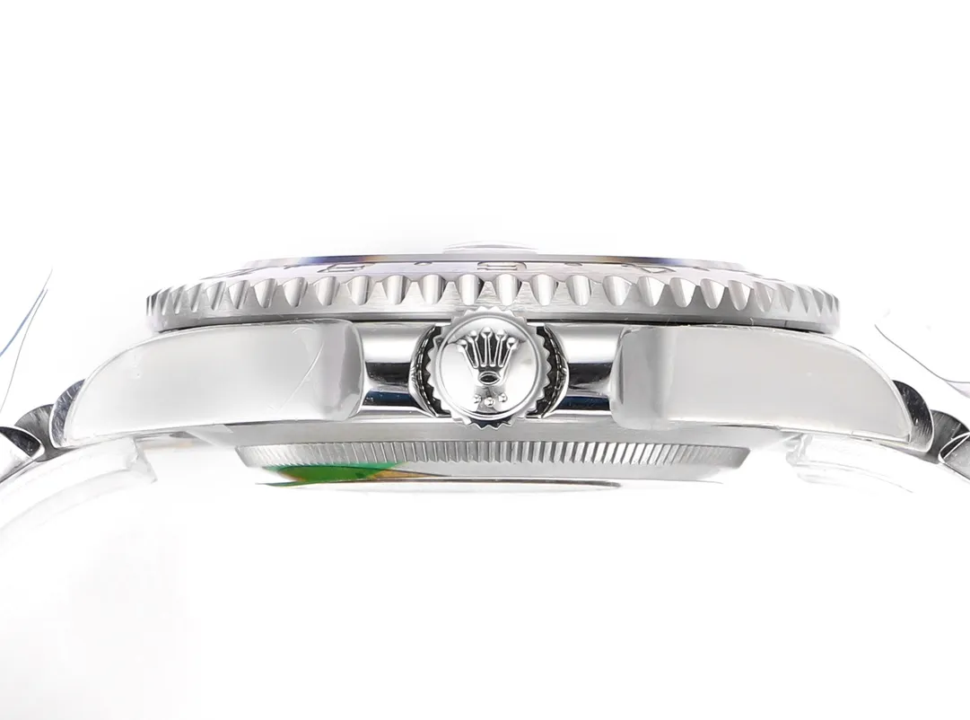 – **Ceramic Bezel:** Features a one-piece ceramic bezel with platinum numerals, identical to the genuine model.
