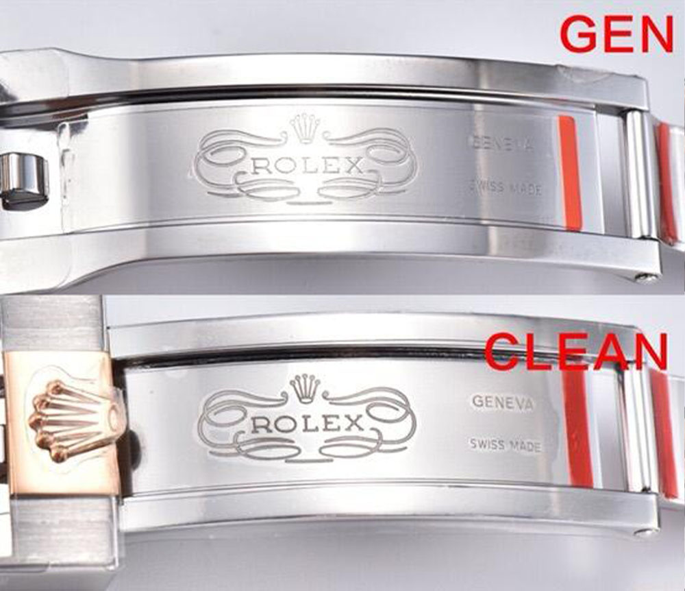 - Genuine: The engravings on the clasps and links are shallow with a refined finish. This reflects Rolex’s attention to subtlety.