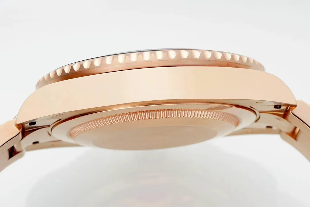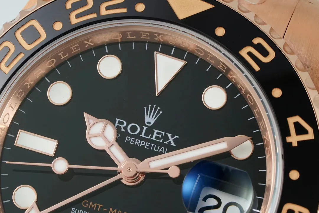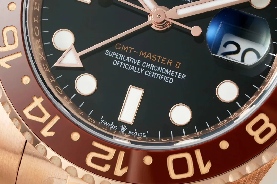 The EWE V5 Rose Gold GMT Black Dial Watch is the ultimate 2019 edition of the GMT II, featuring a rose gold case, black dial, and a unique brown-black ceramic bezel. This timepiece combines luxury with functionality, offering dual time zone tracking and a quick-set date feature. As one of the finest Replica Watches available, it showcases exceptional craftsmanship and attention to detail, making it a standout choice for watch enthusiasts seeking high-quality designs. Whether for travel or daily wear, this watch perfectly balances style and utility with its remarkable design.