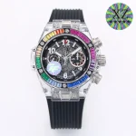 Experience the ultimate in luxury with the Hublot Big Bang Transparent Rainbow Watch. This masterpiece features a fully transparent case, vibrant rainbow bezel, and high-quality materials for durability and style. As a standout among Replica Watches, this timepiece offers exceptional craftsmanship and design, making it a top choice for enthusiasts seeking premium Swiss replica options. Discover the elegance and precision of this remarkable watch, crafted to perfection for those who appreciate fine replicas.