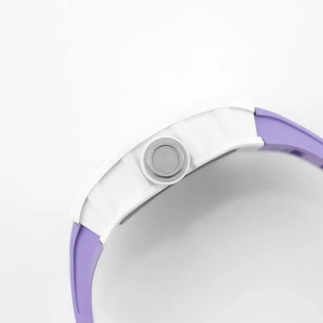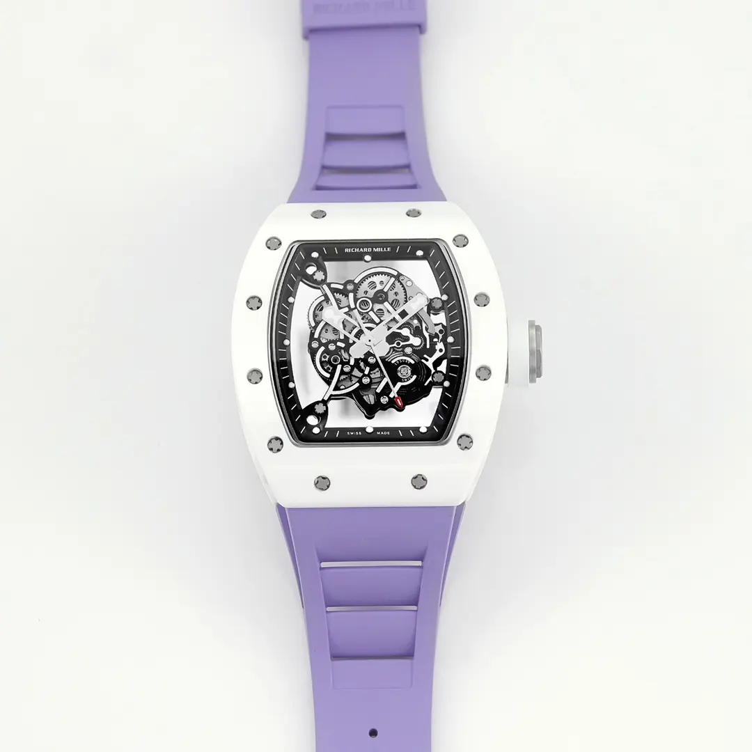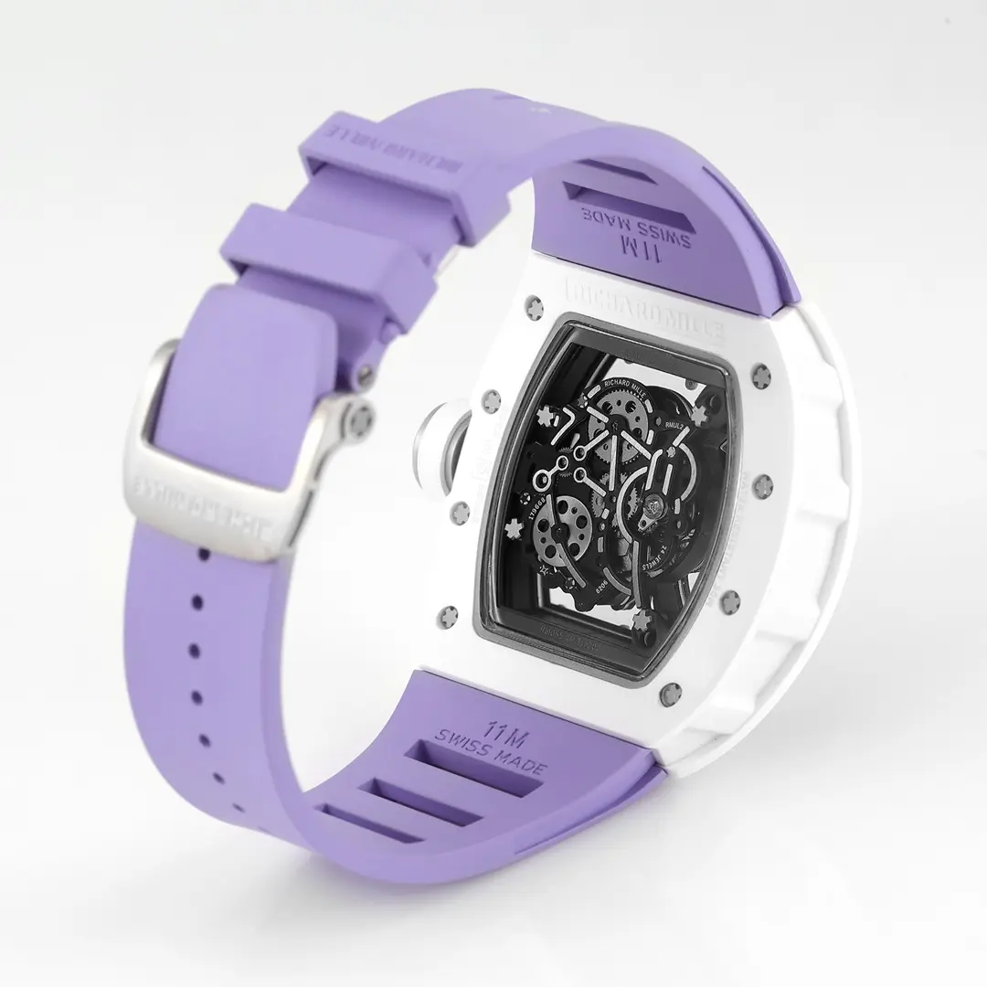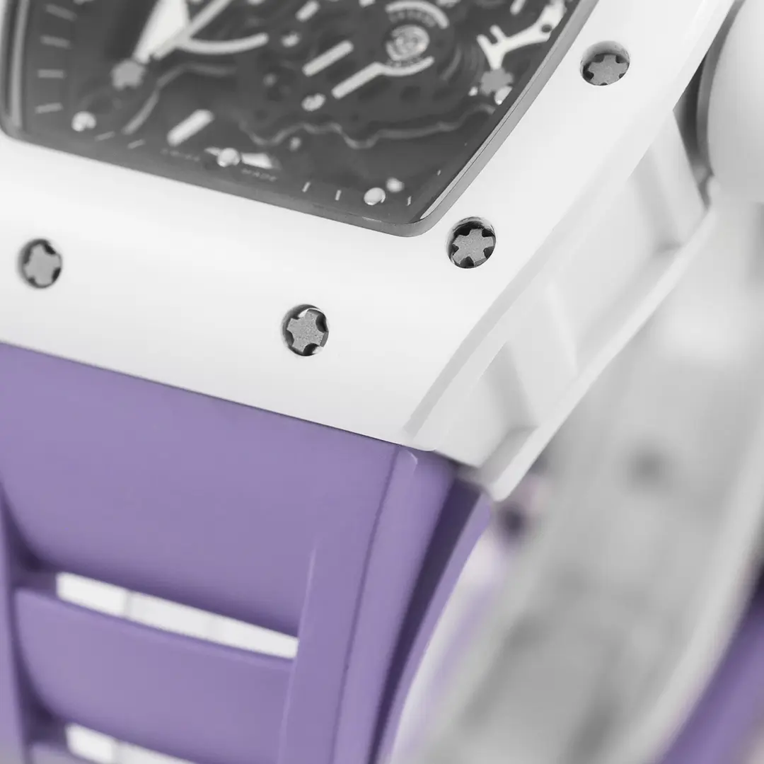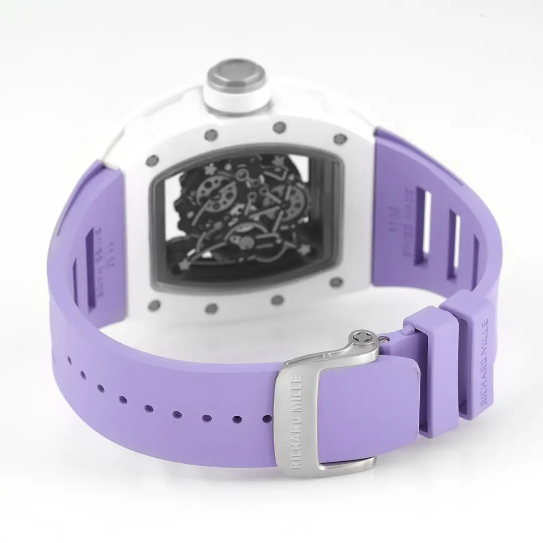 Richard Mille RM055 White Ceramic Watch Purple Strap Black Ceramic Watch Purple Strap