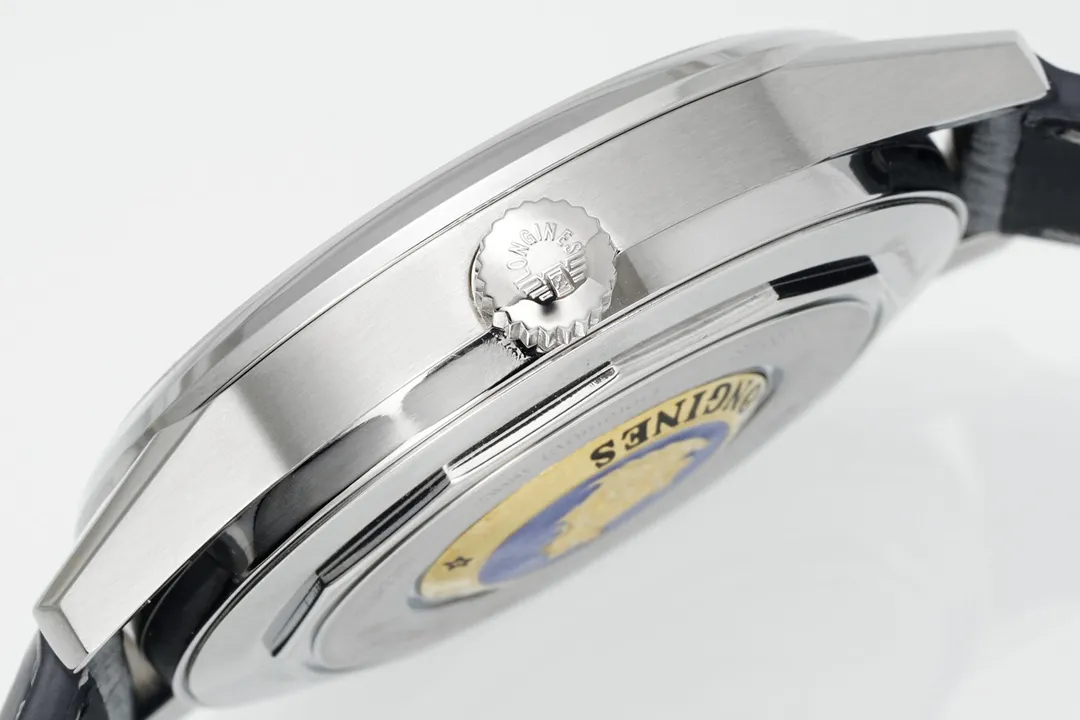 The Longines Classic Flagship Moonphase Watch combines vintage charm with modern functionality. Its silver dial and black leather strap offer timeless elegance, making it a perfect choice for any formal occasion. This exquisite timepiece stands out as a remarkable Replica Watch, crafted with attention to detail to reflect the original design. Whether you’re a collector or simply seeking a high-quality piece from ChinaTime, this Longines watch delivers unmatched style and sophistication.