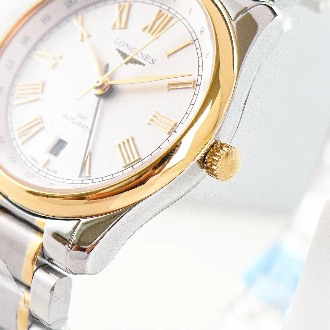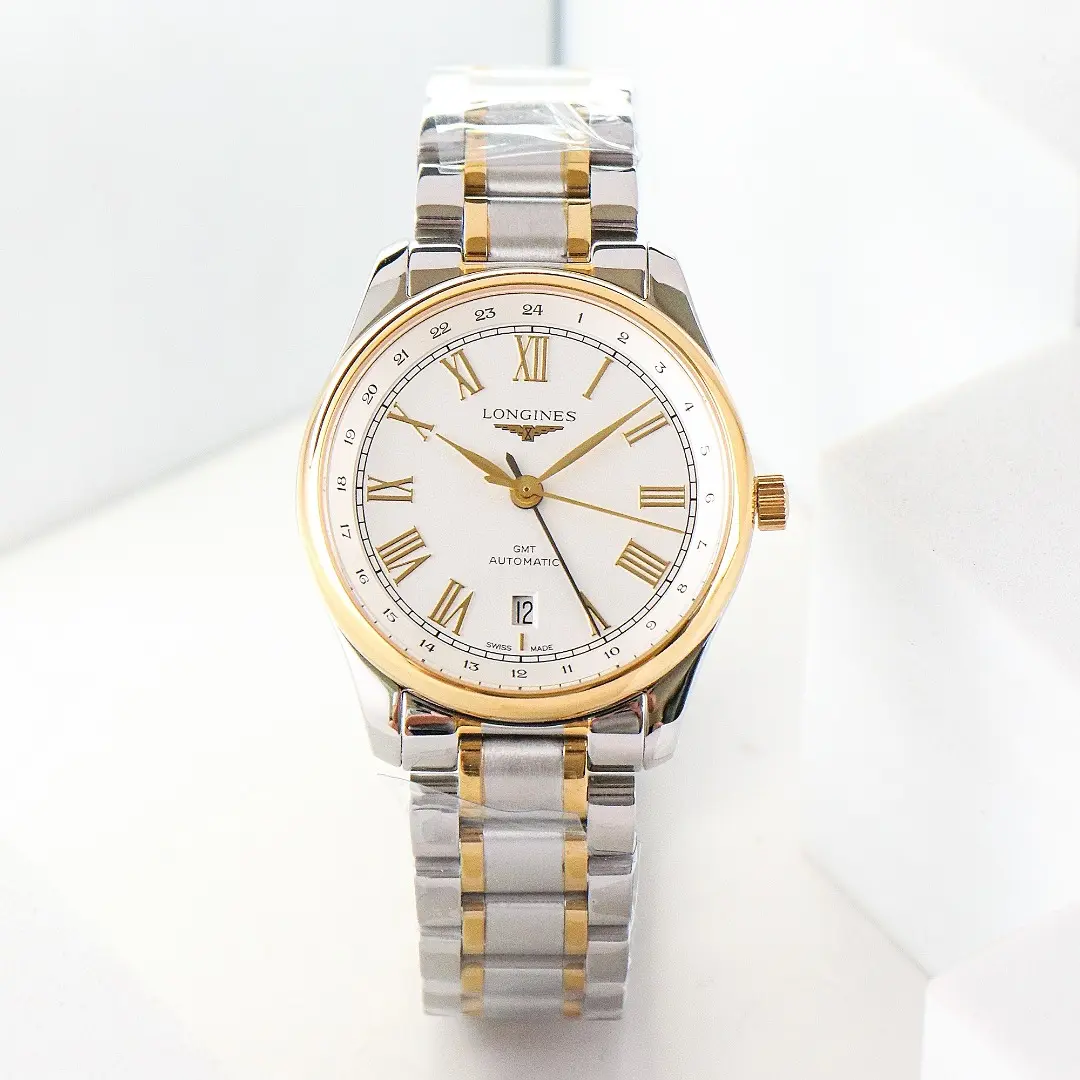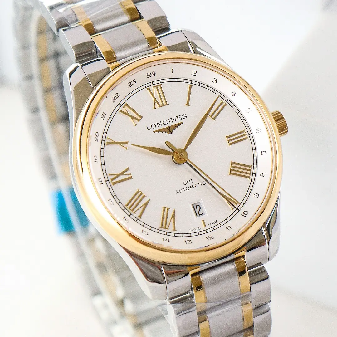 – **Elegant Design:** The Longines Master Classic Moonphase GMT Watch features a sophisticated white dial with Roman numerals, enhancing its timeless appeal.