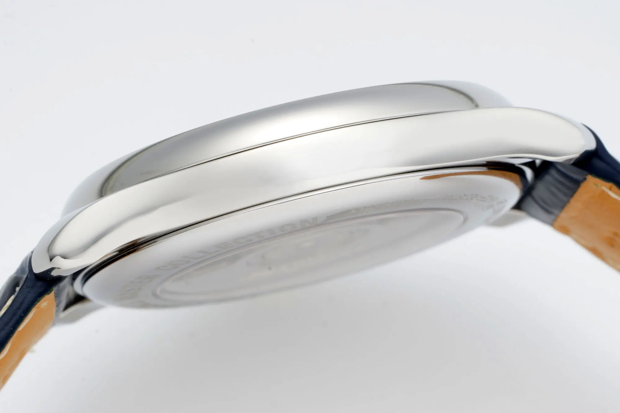 – **Distinctive Hands:** It boasts blue steel hands with a leaf shape, mirroring the authentic style and craftsmanship of the genuine product.