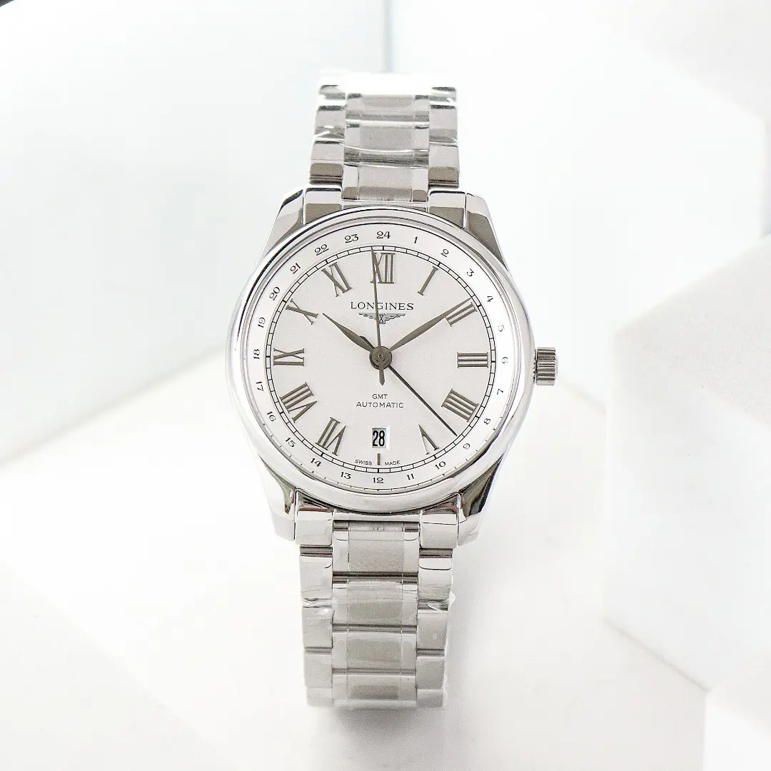 Longines Master Collection Classic Re-Edition GMT Watch – White Dial, Stainless Steel Bracelet, 40mm Case, Sapphire Crystal