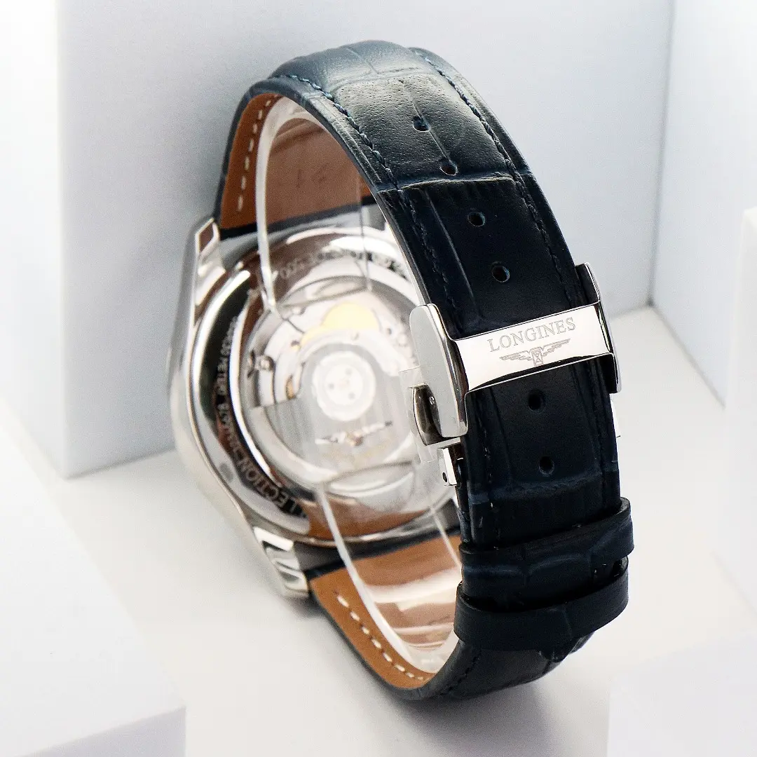 8 reviews for Longines Master Collection GMT Watch – White Dial with Blue Hands, 40mm Stainless Steel Case, Italian Grey Leather Strap