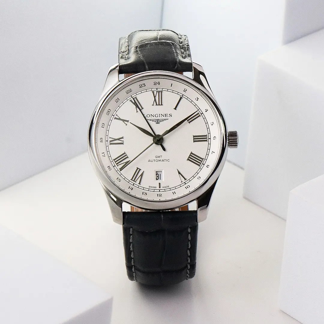 Longines Master Collection GMT Watch – Silver Dial, Black Leather Strap, 40mm Case