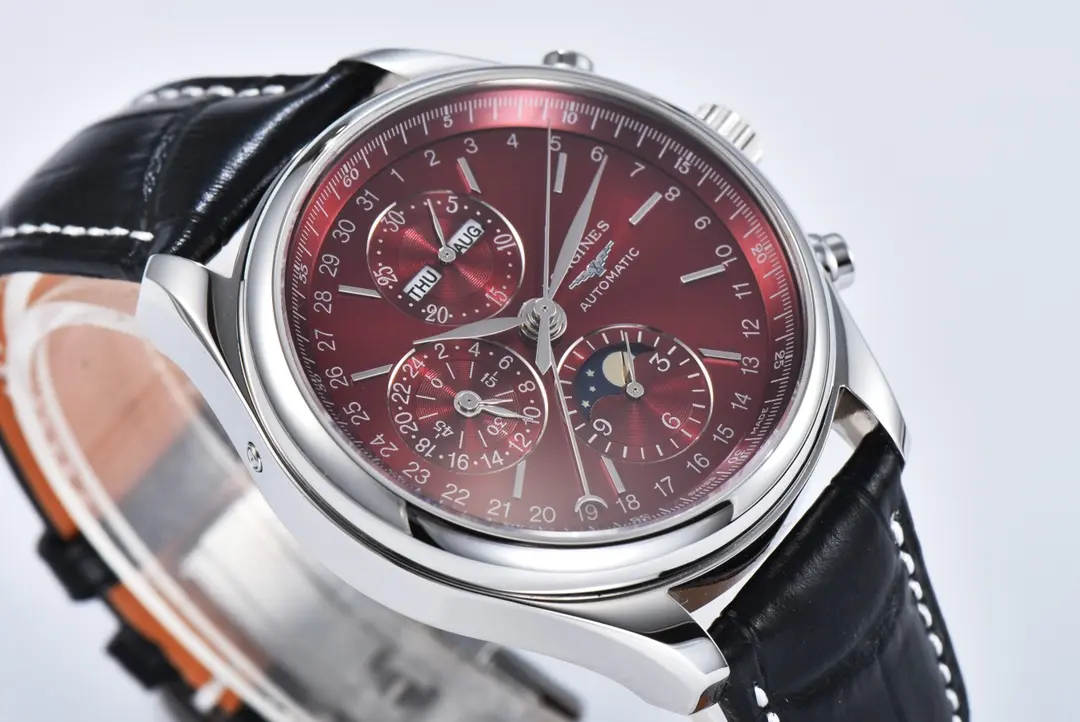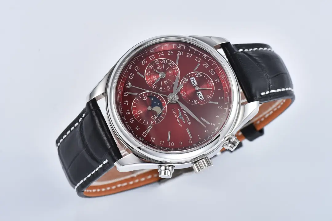 6 reviews for Longines Master Collection Moonphase Chronograph Watch – Red Dial, 42mm Stainless Steel Case, Black Leather Strap
