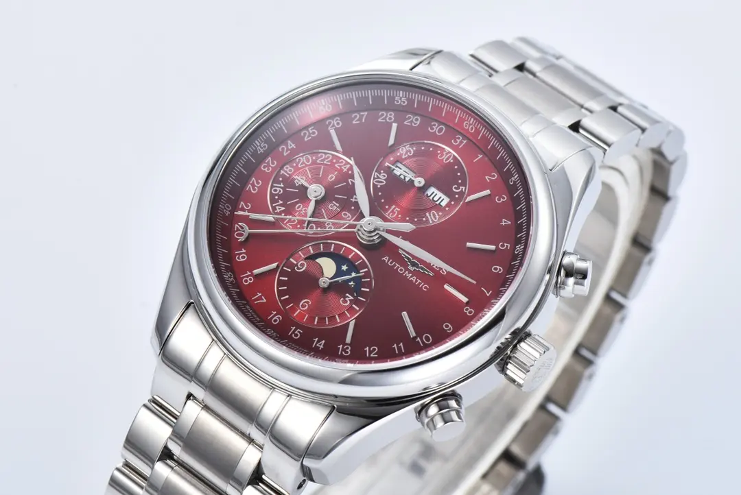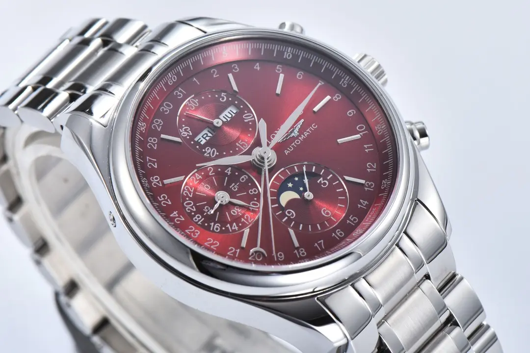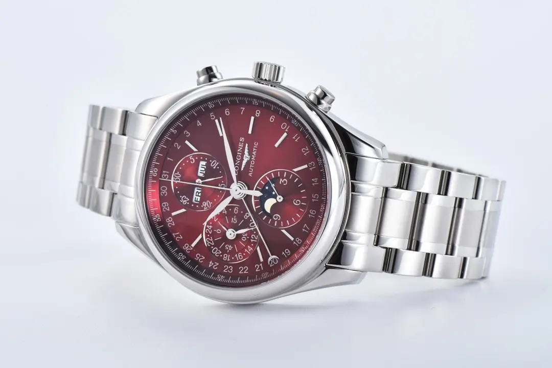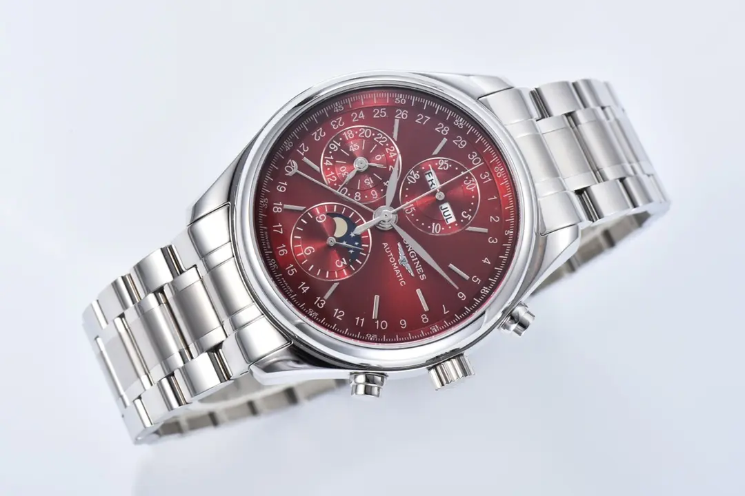Experience the elegance of the Longines Master Collection with this 42mm Moon Phase Chronograph watch replica. Featuring a stunning red dial and stainless steel bracelet, it combines classic style with modern functionality. This 1:1 super clone watch captures every detail of the original design, making it a perfect choice for enthusiasts seeking precision and authenticity through premium Replica Watches and exceptional Swiss Replica craftsmanship.