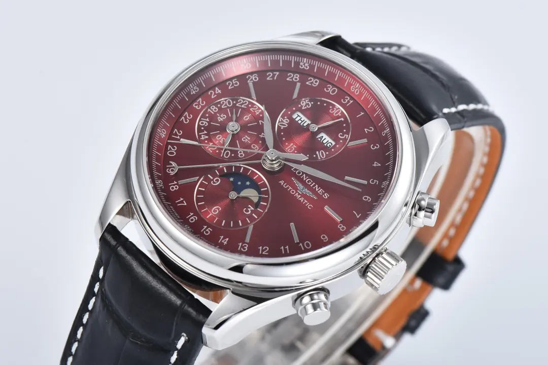 Experience classic elegance with the Longines Master Collection Moonphase Chronograph Watch Replica. Featuring a stunning red dial, 42mm stainless steel case, and black leather strap, this 1:1 super clone watch combines exceptional functionality with timeless style. Crafted with meticulous attention to detail, this watch replica captures the essence of the original design, making it a perfect choice for enthusiasts seeking precision and sophistication through Replica Watches. For those passionate about high-quality craftsmanship, explore more at Swiss Replica.