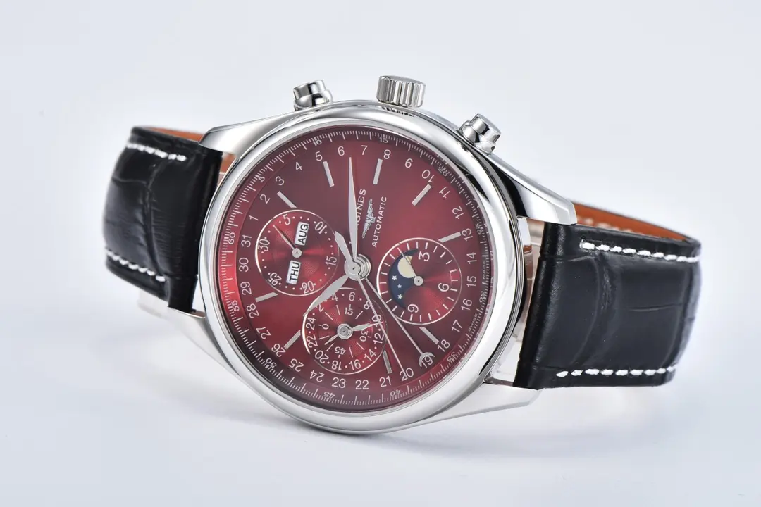 6 reviews for Longines Master Collection Moonphase Chronograph Watch – Red Dial, Stainless Steel Case, Black Leather Strap, 42mm