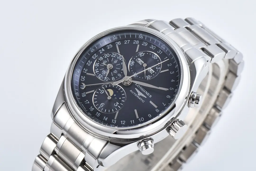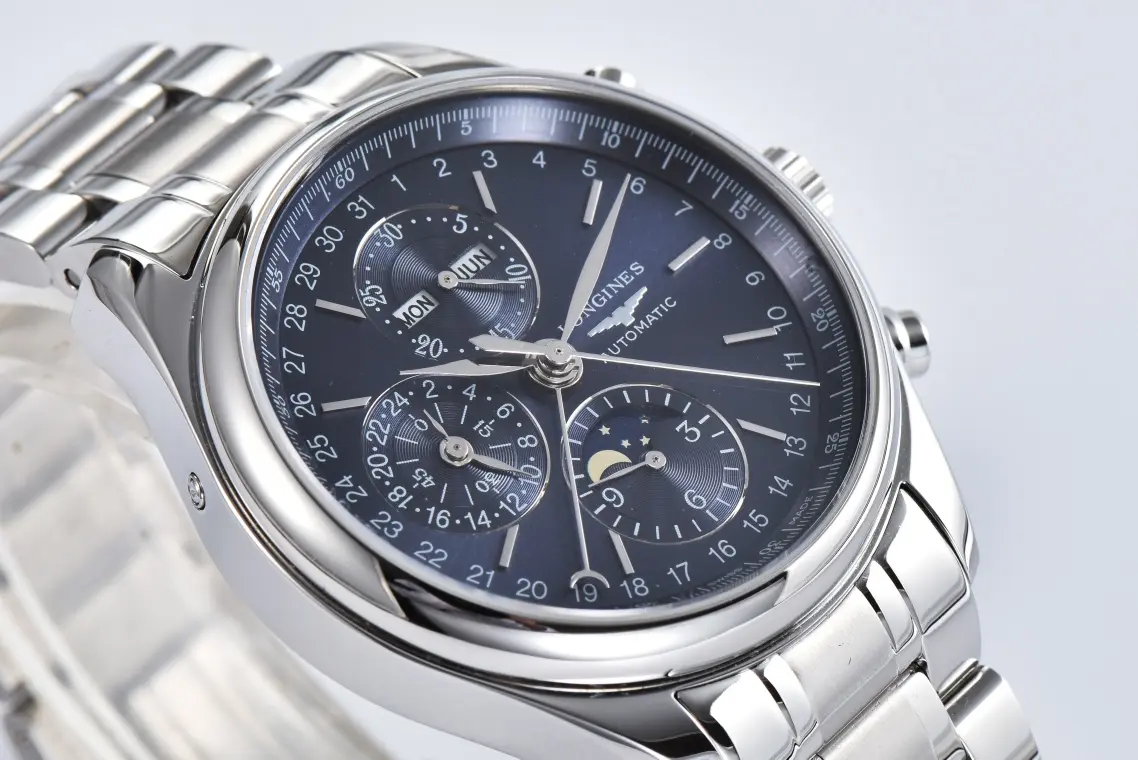 Experience the elegance of the Longines Master Collection with this Moonphase Chronograph Watch. Featuring a silver stainless steel case and a striking blue dial, this 42mm timepiece combines classic style with modern functionality. As a premium watch replica, it offers exceptional craftsmanship that rivals the original design. Explore the finest 1:1 super clone watches at ChinaTime to elevate your collection with unmatched precision and style. Discover more about high-quality timepieces and enhance your wardrobe with stunning Replica Watches.
