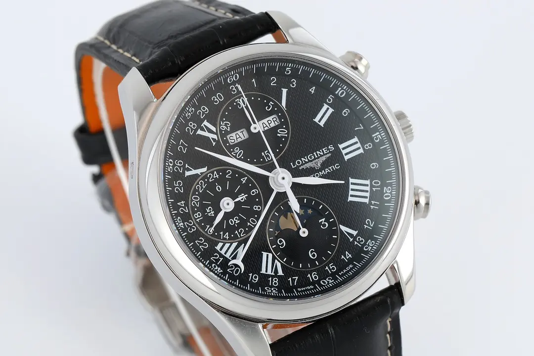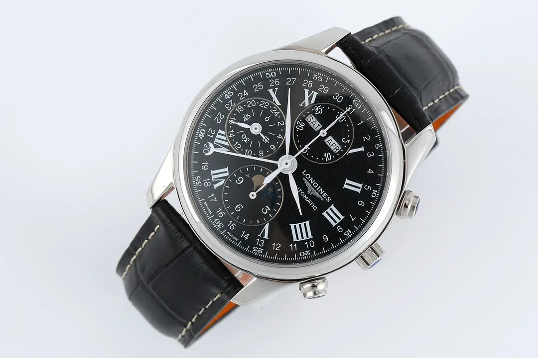 Introducing the Longines Master Collection Moon Phase Eight-Needle V4 Edition, a stunning 1:1 super clone watch that features a sophisticated black dial, stainless steel case, and a luxurious leather strap. This exceptional timepiece combines classic elegance with modern upgrades, ensuring both style and precision. Perfect for enthusiasts seeking a high-quality 1:1 super clone watch, this masterpiece reflects meticulous craftsmanship and attention to detail. Discover more about exceptional watches at Swiss Replica. Explore further premium timepieces at Replica Watches.