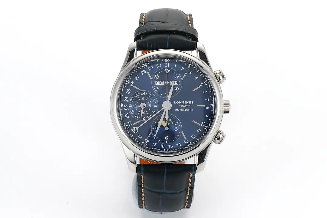 Longines Master Collection Moonphase Blue Dial Automatic Watch with Leather Strap