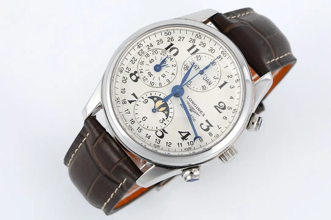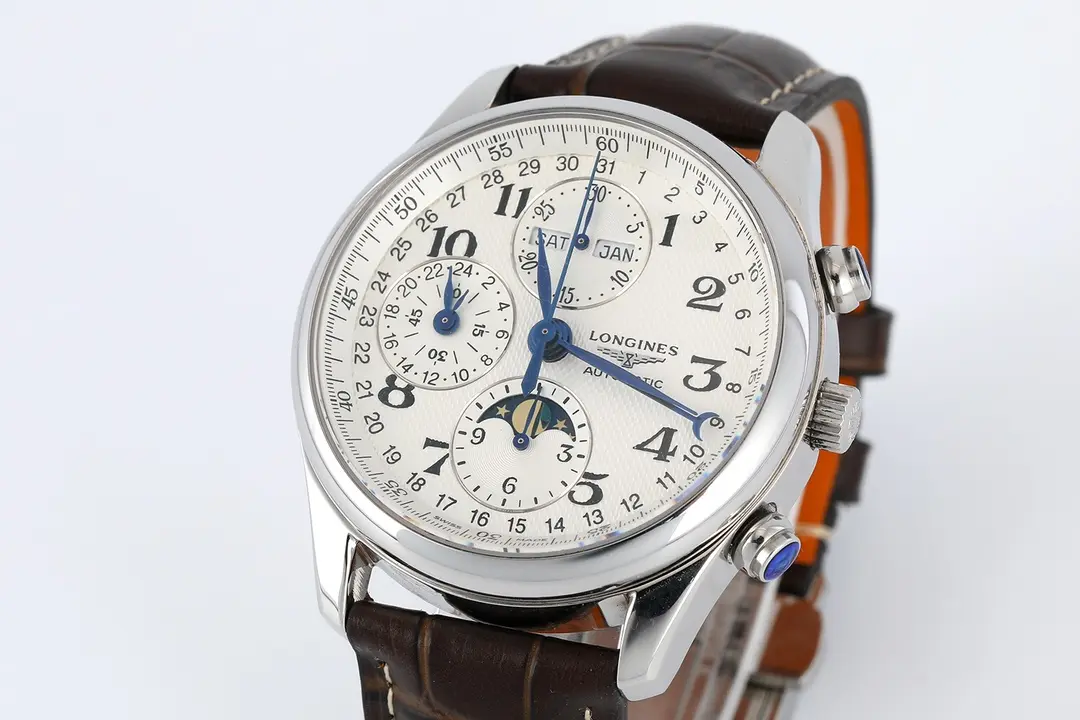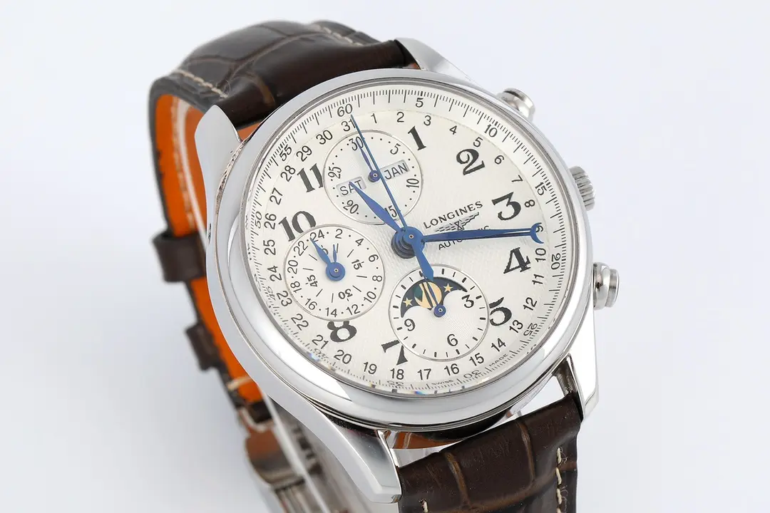 Experience luxury with the Longines Master Collection Moonphase Eight-Hand V4 Watch, featuring a silver dial and brown leather strap. This watch combines elegance with precision, showcasing upgraded features that mirror the original’s sophistication. As a premium 1:1 super clone watch, it offers unmatched attention to detail and craftsmanship, making it a standout choice for watch enthusiasts seeking high-quality Replica Watches and exceptional designs like those found at Swiss Replica.