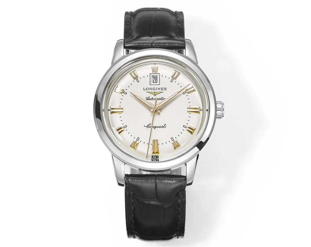 Longines Heritage Conquest Classic Re-Edition “Cyclops” Watch – Silver Dial, Black Leather Strap