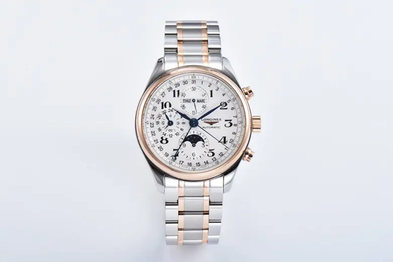Longines Master Collection Moonphase Chronograph Watch – Silver Dial, Two-Tone Stainless Steel and Rose Gold Bracelet