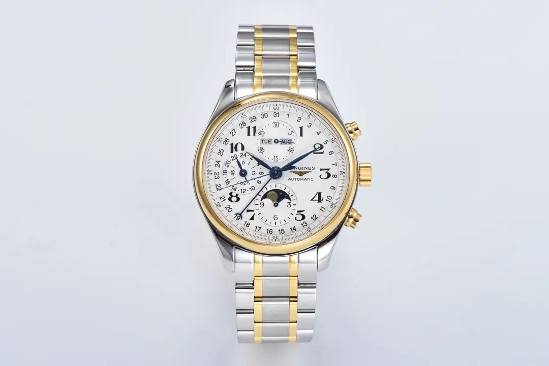 Longines Master Collection Moonphase Chronograph Watch – Silver Dial, Two-Tone Stainless Steel Bracelet, Classic Elegant Style