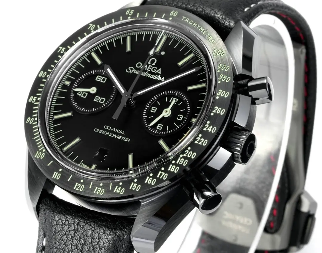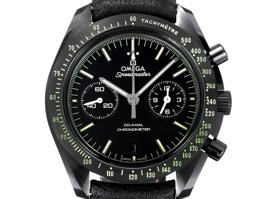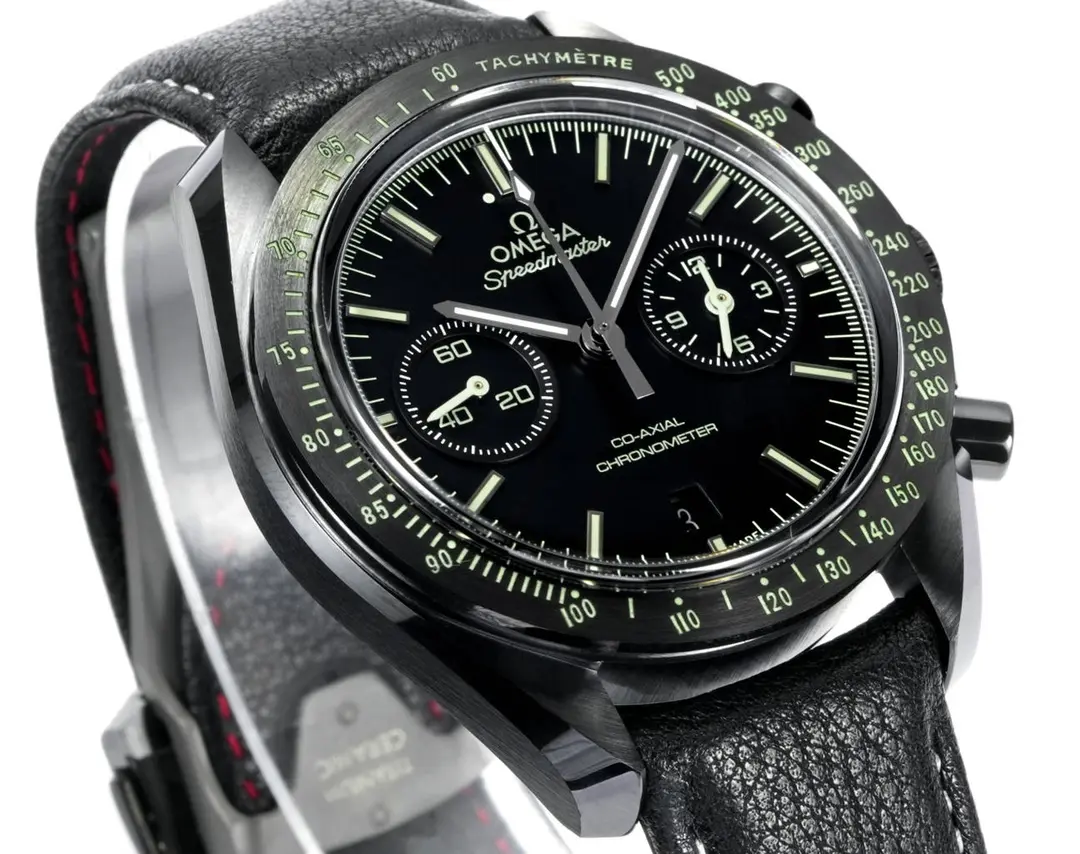 Omega Speedmaster Dark Side of the Moon Series Full Ceramic Black Chronograph Watch with Black Leather Strap
