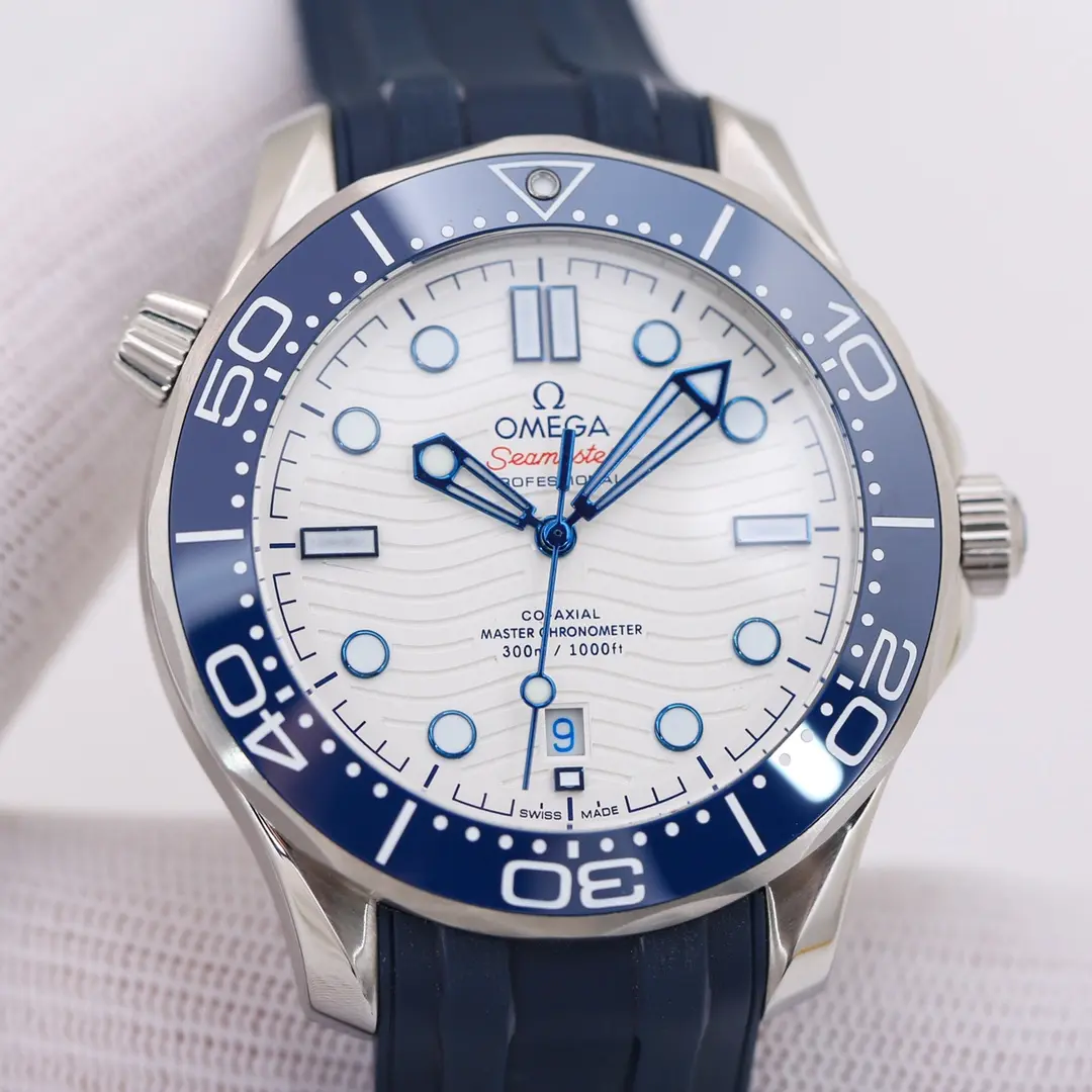 The OMEGA Seamaster Diver 300M watch combines luxury with functionality, featuring a stainless steel case, blue and white ceramic bezel, and a rubber strap. Ideal for diving, it showcases both style and durability. For those seeking high-quality timepieces, this watch stands out among the finest Replica Watches available, offering exceptional craftsmanship at an accessible price point. Explore more about Replica Watches to find the perfect blend of elegance and performance for your collection.