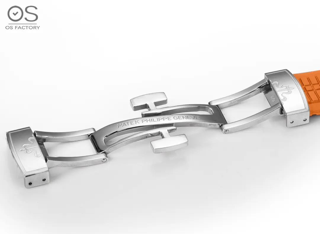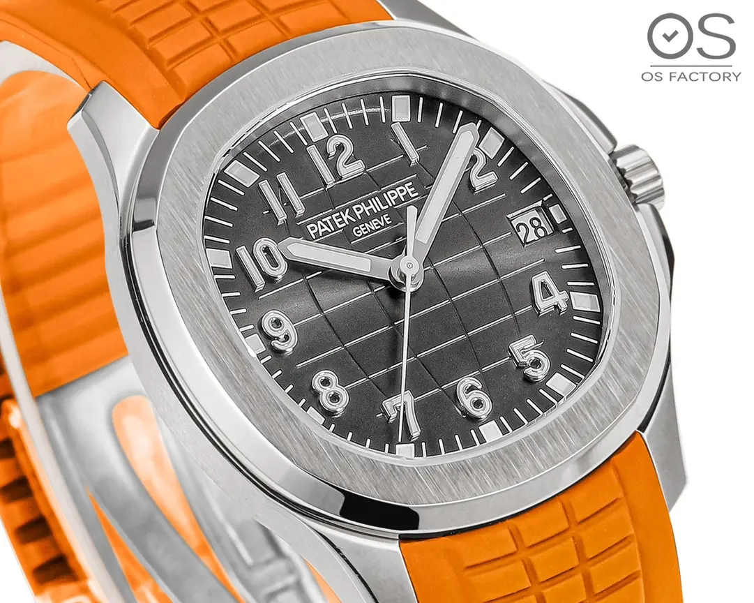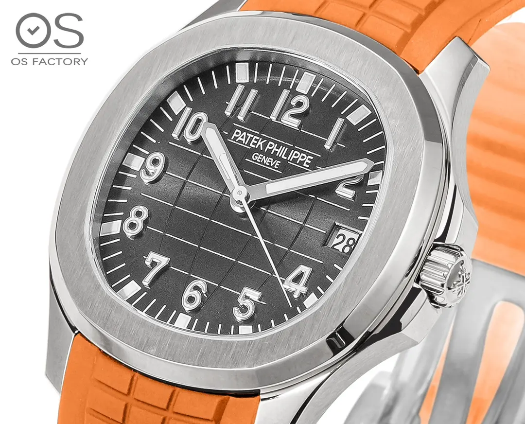 Patek Philippe Aquanaut Series Men’s Mechanical Watch – OS Factory V2 Edition, White Steel 1500, Rose Gold 1600, 5167A/5168G/5167R, with Custom Cal.324SC Movement, Orange Rubber Strap, 40mm Case, 8.5mm Thick
