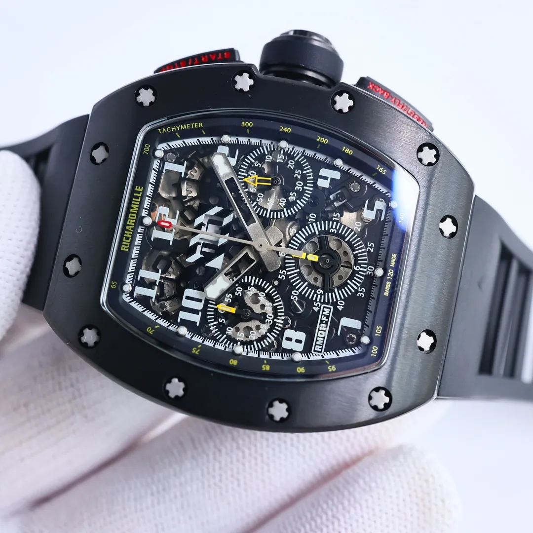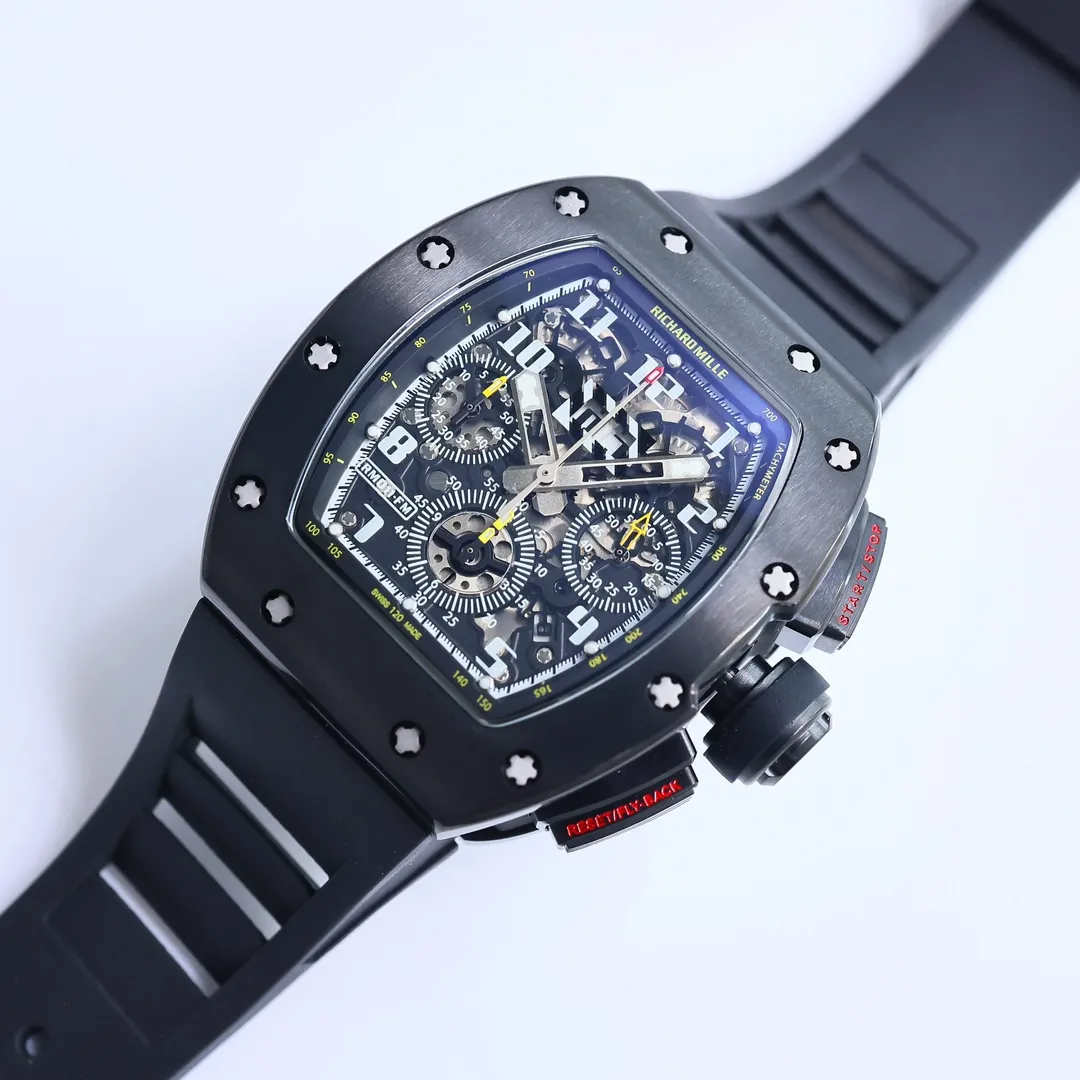 The Richard Mille Black RM011-FM Chronograph Watch is a masterpiece of modern watchmaking, combining iconic design with advanced craftsmanship. Available in titanium, rose gold, and titanium versions, it boasts a finely brushed finish with polished bevels. Inspired by F1 racing, this watch offers both style and functionality, making it a standout piece for any collection. For those seeking high-quality Replica Watches, this timepiece exemplifies the precision and elegance often found in top-tier designs. Explore exceptional replica watches at ChinaTime to find similar stunning creations that blend luxury and affordability.
