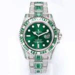 – **Custom Design:** This Rolex Submariner features a unique custom design with green and diamond elements, setting it apart from standard models.