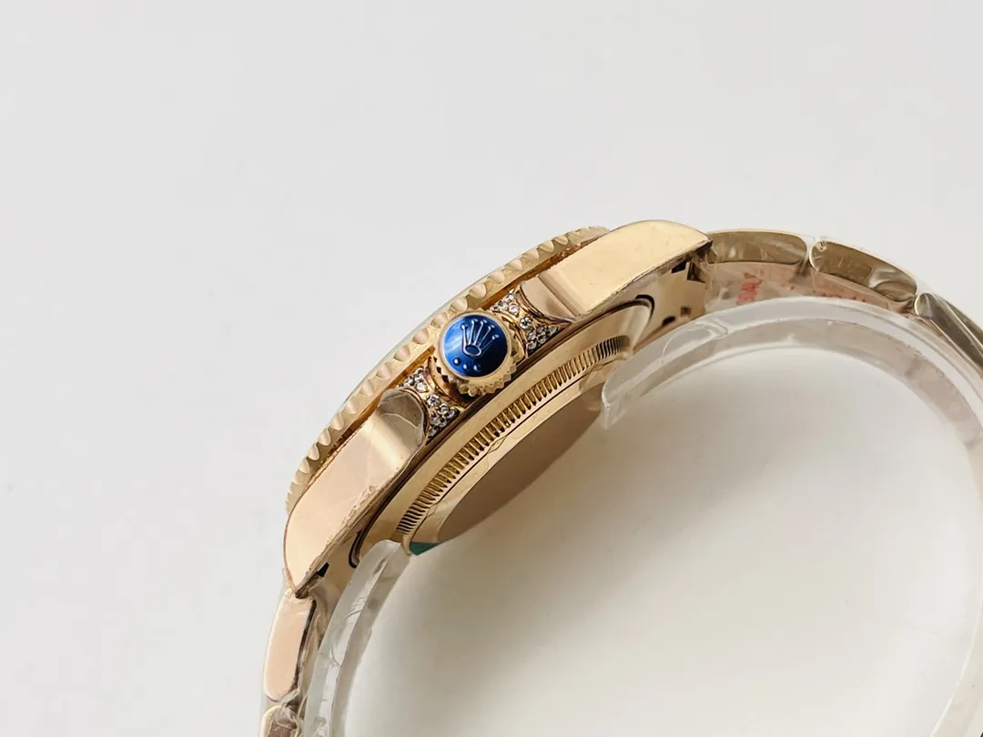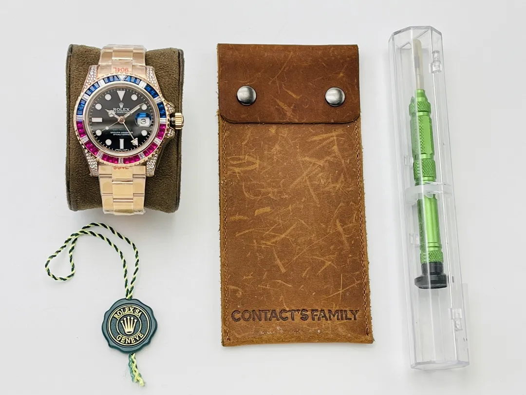 Experience luxury with the Rolex GMT II Custom Diamond Gold Watch, a 2022 masterpiece by VR Factory. This 40MM gold watch features a dazzling array of Austrian diamonds and gemstones, blending classic style with modern flair. For those seeking the finest timepieces, this watch is among the best Rolex clones available, standing out as an exceptional choice in the world of replica watches. Discover unmatched quality and elegance with this stunning piece that rivals even the finest luxury designs.