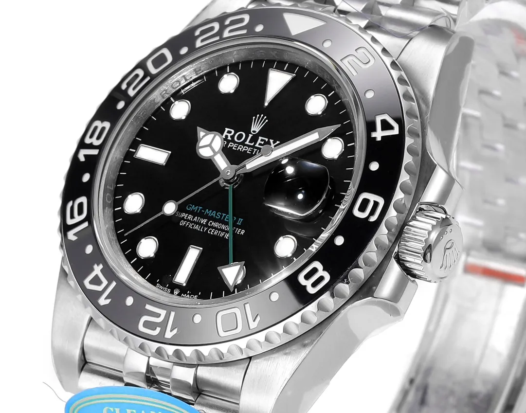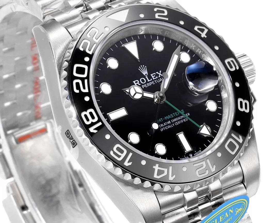 Experience the luxury of the Rolex GMT-Master II with this meticulously crafted replica. Featuring a black dial, 904L steel, and a ceramic bezel, it combines elegance with functionality for the discerning watch enthusiast. As one of the best Rolex clones available, this timepiece offers exceptional quality and design, making it a standout choice among replica watches. Whether you’re a collector or simply seeking a premium watch, this piece delivers unmatched style and precision.