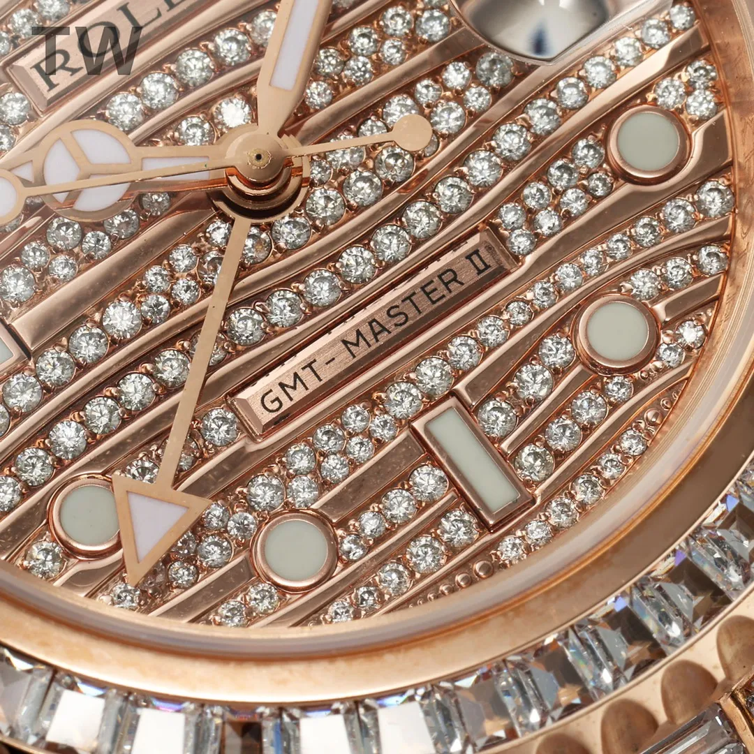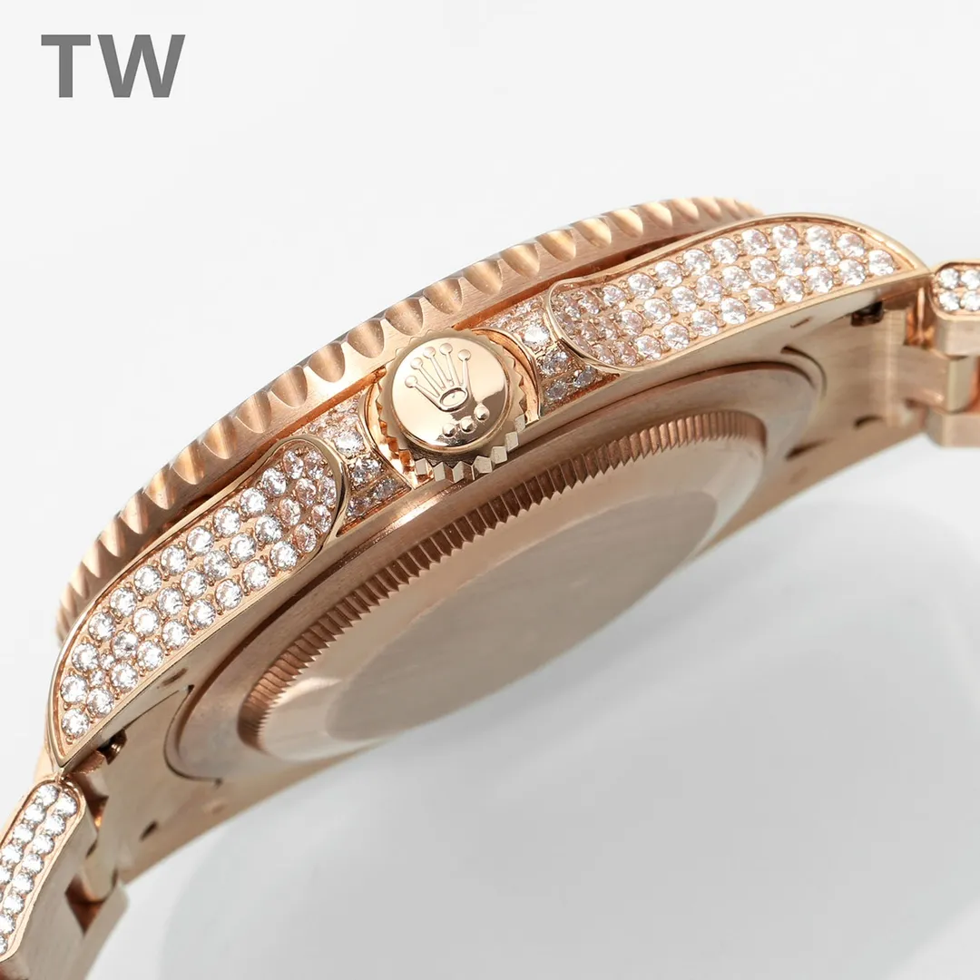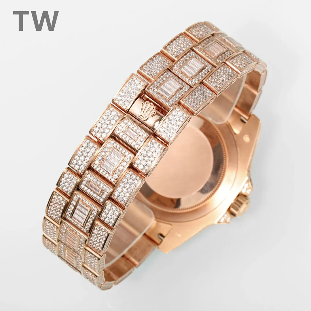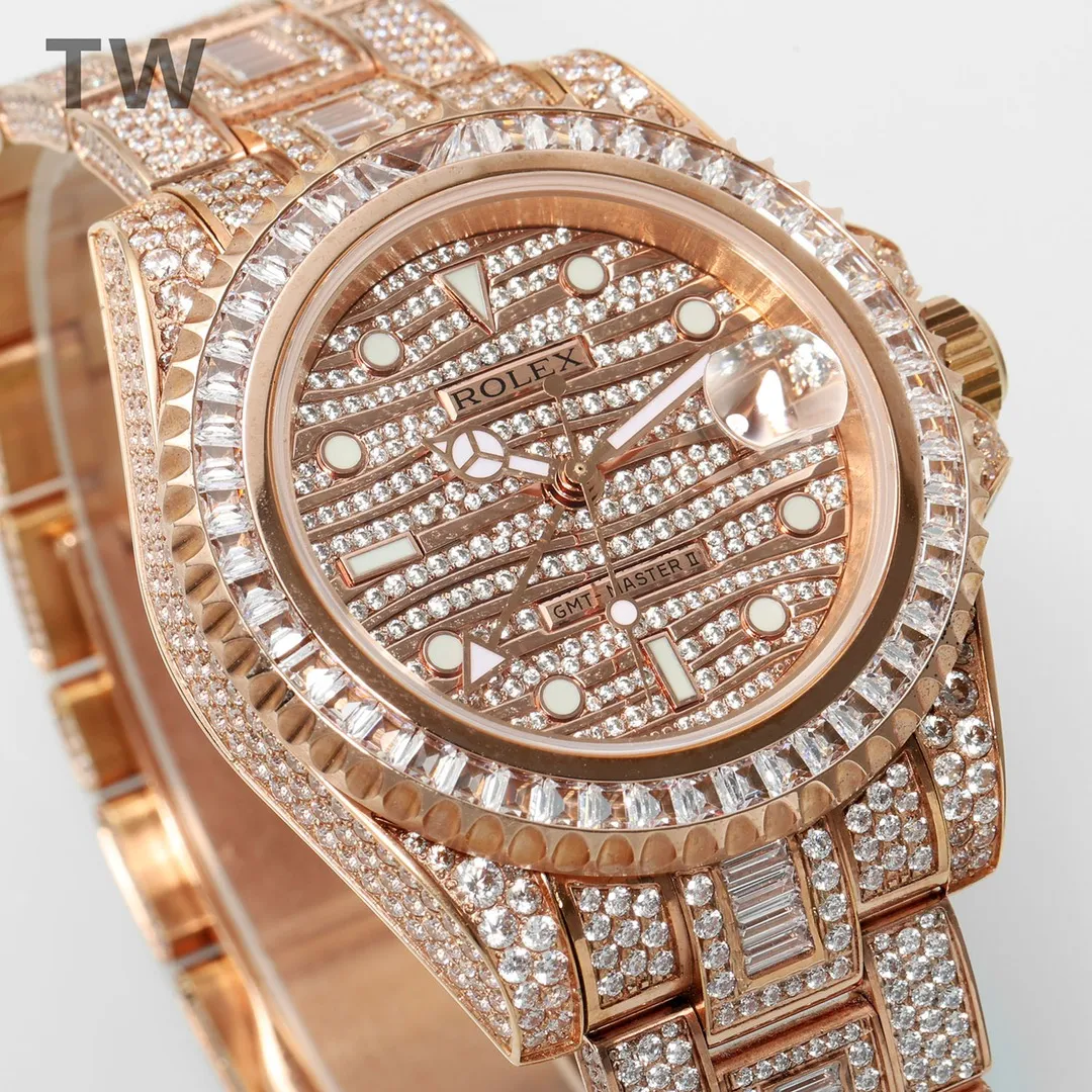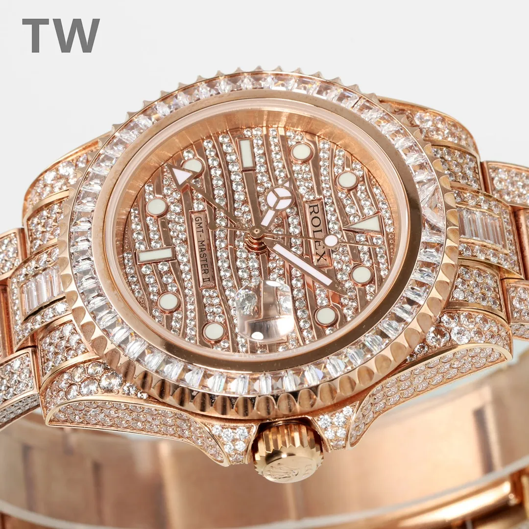 Experience the epitome of luxury with the TW Rolex GMT-Master II Rose Gold Diamond Watch. This 40mm masterpiece, adorned with Swarovski diamonds, offers unparalleled elegance and comfort with its easy-link extension system. As one of the finest Replica Watches available, this timepiece captures the essence of high-end craftsmanship. Whether you’re seeking replica watches that mirror the original design or a stunning addition to your collection, this watch stands out with its meticulous detailing and luxurious appeal.